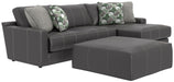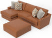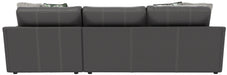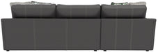 Minori is a stationary sectional in a popular "Chofa" or "Chaise/Sofa" configuration. This genuine Italian Leather group features correlating fabric toss pillows, decorative luggage stitching detail, and is available in your choice of two colors: Whiskey or Steel.