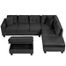 Modern Sectional Sofa With Storage Ottoman, L - Shape Couch With 2 Pillows And Cup Holders - Black