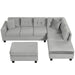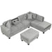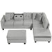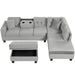 Modern Sectional Sofa With Storage Ottoman, L - Shape Couch With 2 Pillows And Cup Holders - Gray