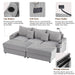 Modern Style 4 - Seater Sofa Sectional Sofa Couch With Storage Space, Two Movable Ottomans, Two USB Ports, Two Cup Holders, A Phone Holder For Living Room - Gray