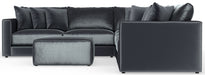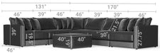 Remington is a track arm design Modular Sectional with loose backs and our Cuddler Cushion for ultimate comfort. Available in your choice of two luxurious velvet fabric colors: Pine or Slate.