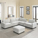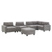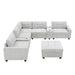Sectional With Acrylic Table Top U Shaped Couch Set With 2 Consoles USB Charger, Storage Drawers And Pockets Movable Ottoman Tufted Sofa - Light Gray