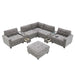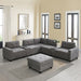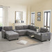 Sectional With Acrylic Table Top U Shaped Couch Set With 2 Consoles USB Charger, Storage Drawers And Pockets Movable Ottoman Tufted Sofa - Gray