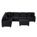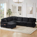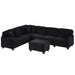 Upholstered U Shaped Sectional Sofa With Movable Ottoman And Side Storage Pockets - Black