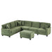 Modern Sectional Sofa U Shaped With Movable Ottoman And Side Storage Pockets Corduroy - Green