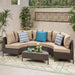 - Modern Design: This sectional sofa set features a timeless design with a half-circle shaped lounge and a matching table. The four-seat sectionals can be arranged to fit either a tight circular or dispersed setting, offering versatile seating arrangements for any space.