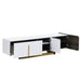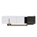 - Modern & Elegant Design:The TV cabinet and coffee table set feature a striking contrast between white surfaces, classic wood grain, and gold details. The sleek metal L-shaped frame and clean lines create a sophisticated.
