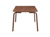 - Table Specifications: The dining table measures 35" D x 63" W x 30" H, with a tabletop thickness of 18mm, and a floor clearance of 27", made from sturdy rubber wood with a weight limit of 100 lbs.