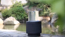 Heavy Cement Round Ribbed Outdoor Water Fountain With Light - Black White