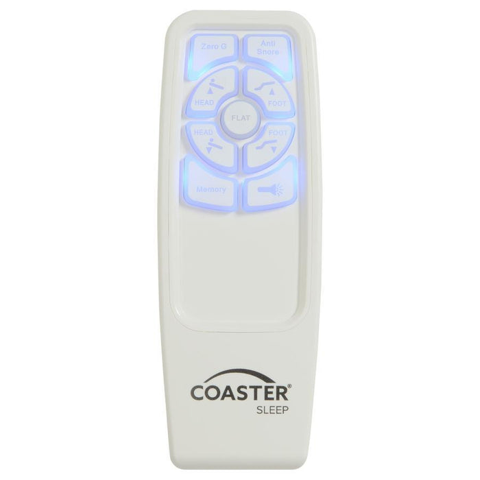 - Wireless remote features back-lit soft-touch controls for independent head and foot incline, preset Zero Gravity/Anti-Snore/Flat/Memory positions, as well as a handy integrated flashlight