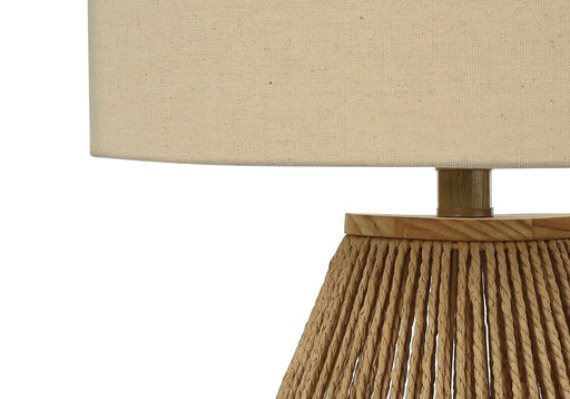 Stylish Design: This boho-inspired table lamp features an open textured base made from natural brown linen rope, complemented by a contrastin...
