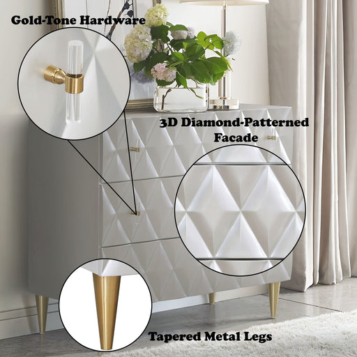 Modern and dimensional, this Anson geometric console cabinet elevates the look of any home with its metallic silver finish and champagne accents. C...