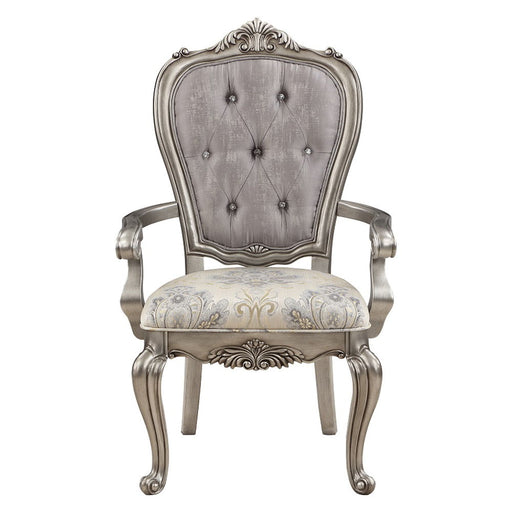 The Ariadne chair is fit for royalty! The platinum finish of the wooden frame complements the lustrous upholstery over button-tufted seatback and a...