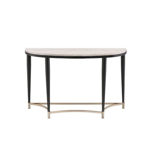 KD, Half-Moon Sofa Table • NO Storage • Wooden Top, Metal Tapered Leg •• CONSTRUCTION] Wooden Top: Veneer (Paper)+ PB • Metal Apron Trim • Metal Sl...