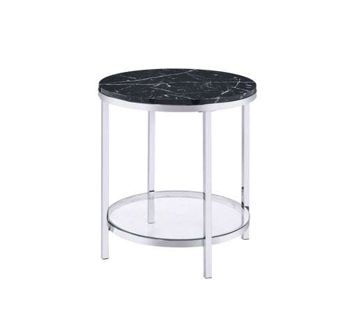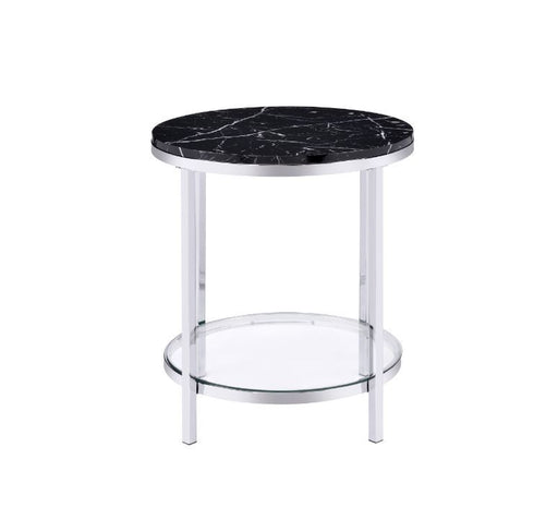 Sleek Design: The Virlana End Table boasts a modern aesthetic featuring a faux black marble top and chrome finish, which adds a touch of soph...