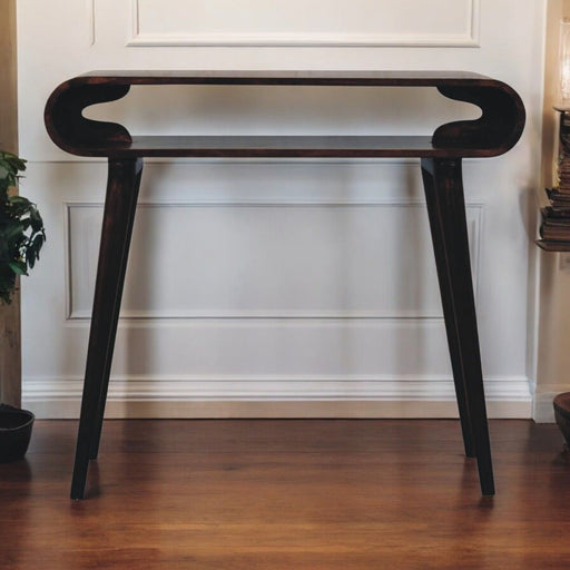 Solid wood Backless Mounted Chestnut Console with Drawer - This minimalist console table, crafted from 100% solid mango wood in a chestnut finish,...