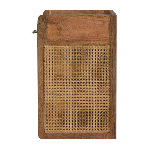Larissa Open Wall Mounted Shelf - This stylish Rattan Wall Mounted Shelf combines a rattan back with a smooth oak-ish finish body. Constructed fro...