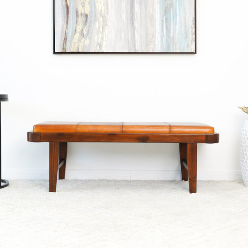 Premium Materials: This bench is crafted to perfection with a solid teak wood frame and genuine leather, ensuring durability and a timeless desig...