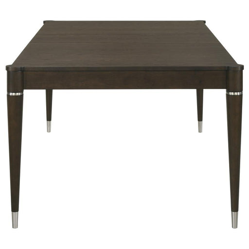 Enhance your dining experience with this contemporary dining table in a stunning ash brown finish. Crafted with a combination of engineered wood, r...