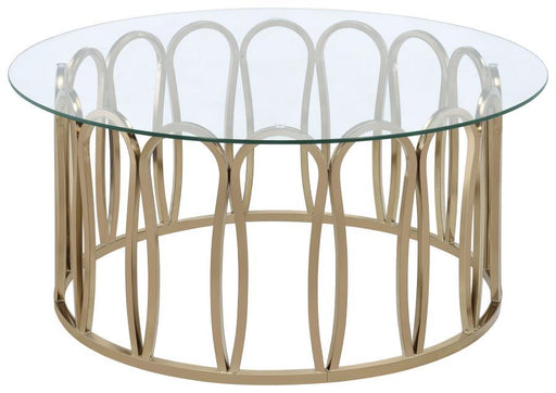 This round table features a clear tempered glass top supported by a durable metal frame. The base is finished in a striking electroplated chocolate...