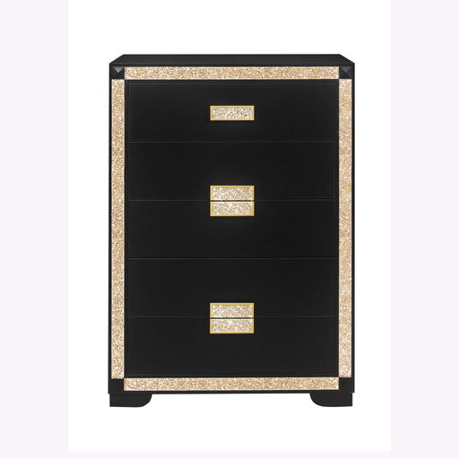Glitter Detail: Adds a touch of elegance with a subtle gold glitter accent. Thick Bar Handle Hardware: Ensures easy opening and closing of drawers...