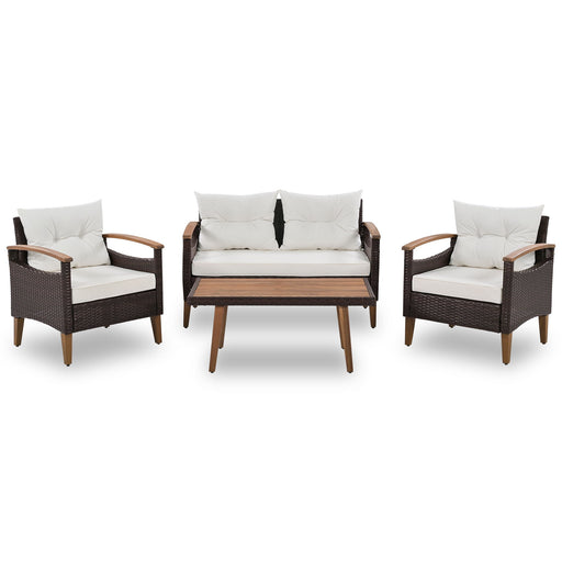 4 Piece Outdoor Sofa Set With Cushions And Coffee Table