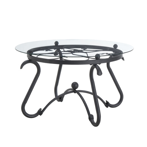 2 Piece Tempered Glass Surface Coffee Table Set, Decor Coffee Table Round End Side Table With Sturdy Construction For Living Room (Rustic) - Black