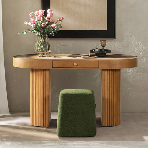Jesse - Single Drawer Fluted Oval Console Desk - Honey Brown