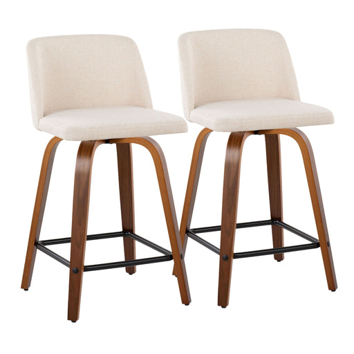 Toriano - Mid-Century Modern Counter Stool, Square Footrest (Set of 2) - Walnut / Cream