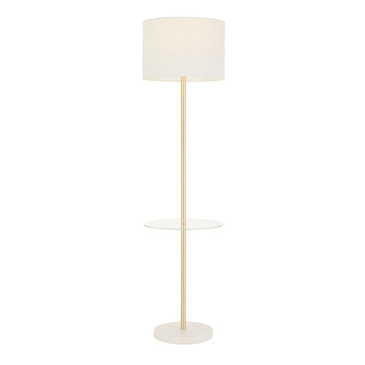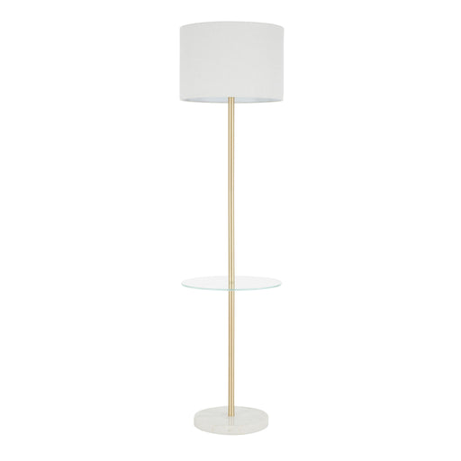 Sleek and Functional Design: The Chloe Shelf Floor Lamp by LumiSource features a modern design with a gold neck, round glass shelf, marble base, ...