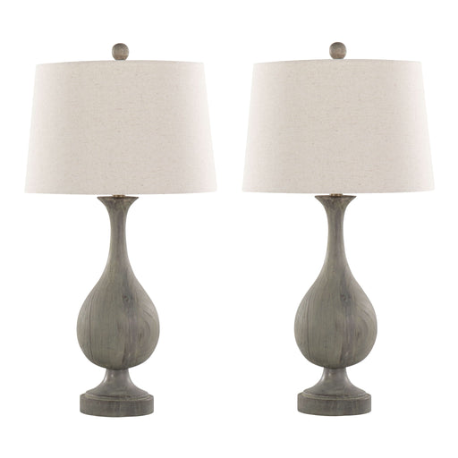 Modern and Chic Design: The Chateau Table Lamp combines modern and chic styles, featuring a polyresin body with a wood finish and a simplisti...