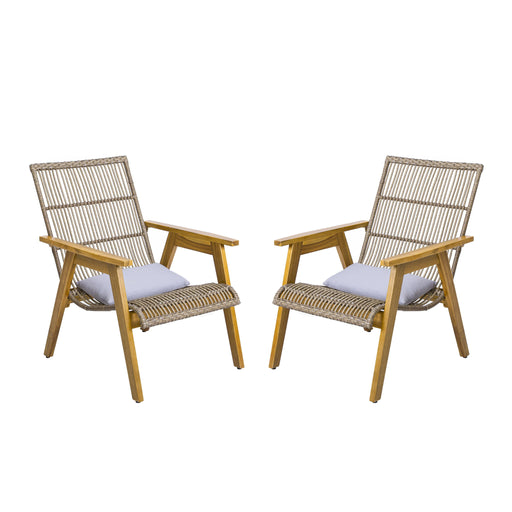 Acacia Wood Cape Woven Wicker Large Lounge Chair With Pillow For Patio, Deck, Yard, Lawn And Garden Seating Wicker (Set of 2) - Teak