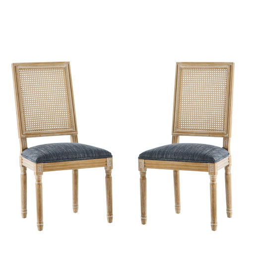 French Country Inspiration: Adds classic and rustic charm with slender fluted legs and a cane backrest. Upholstered: Provides a smooth, refined ap...