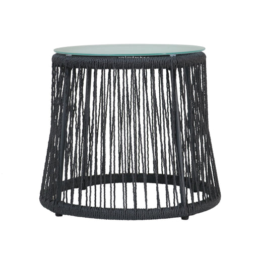 Boho Design: Combines natural rope texture with a sleek glass top for a chic look. Versatile Use: Ideal as an endcap for sofas or a coffee spot in...