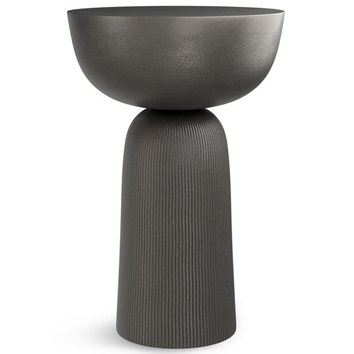 Handcrafted with care using premium Cast Aluminum. Hand-finished in Black Nickel with a subtle texture on the tabletop and vertical lines on the b...