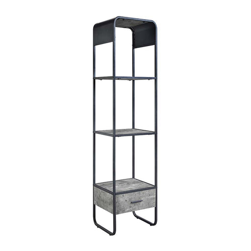 Maximize storage and convenience with the Raziela side pier unit. This piece features a concrete gray finish, a black metal frame, open shelves, an...