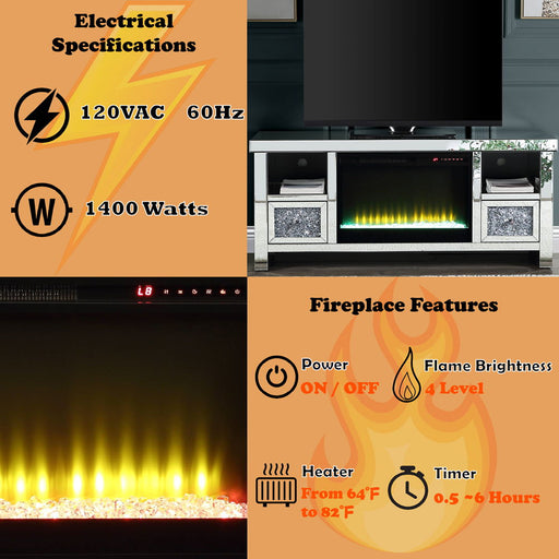 Noralie - TV Stand With Fireplace & LED - Mirrored & Faux DiamondsProduct Features 2 Door Storages(Included 2 Shelf) Adjustable Temperature...