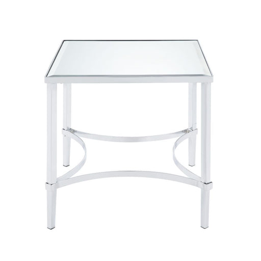 KD, Square Leg End Table • NO Storage (Open Base) • Beveled Mirrored Top & Chrome Finish Legs •• CONSTRUCTION •• Mirror Top: 5mm Mirror with Be...