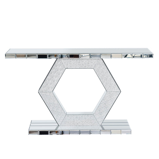 Assambled, Rectangular Table • Beveled Mirrored Finish, Clear Glass with Faux Agate & Faux Diamonds Inlay (Back Unfinished) • Orientation: Free...