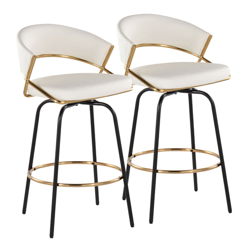 Mara - Upholstered Contemporary Fixed Height Counter Stool With Swivel (Set of 2) - White