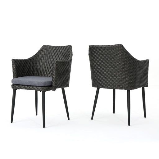 Stylish Design: Elevate your outdoor space with these chic dining chairs. Durable Construction: Metal legs with a wood-like finish ensure long-las...