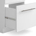 • Cabinet is constructed with melamine and drawer front is wrapped with PVC, materials that are highly durable, low maintenance, and water resistant