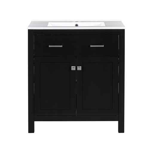 Compact Contemporary Design: vanity cabinet with a sleek profile; perfect for small bathrooms and limited spaces Seamless Ceramic Sink Surface: ce...