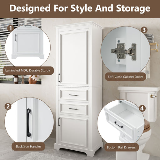 Maximize Storage Space: 23.8"W × 15.7"D × 71"H provides ample vertical storage for organized bathroom essentials. Soft-Close Damping Hinges: Ensur...