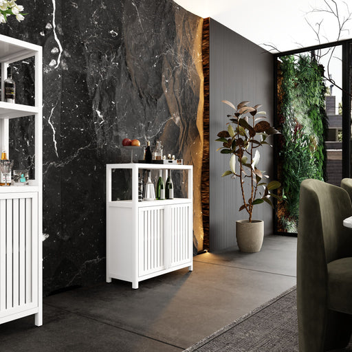 Versatile Use: Perfect for bathroom, living room, kitchen, or entryway storage. Ample Storage: Features a wide tabletop and multiple shelves for o...
