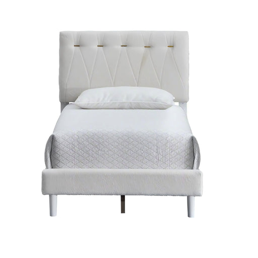 Fit for a princess. This upholstered panel bed’s crisp matte white finish pairs with charming ornate beading and sumptuous button-tufted upholstery...