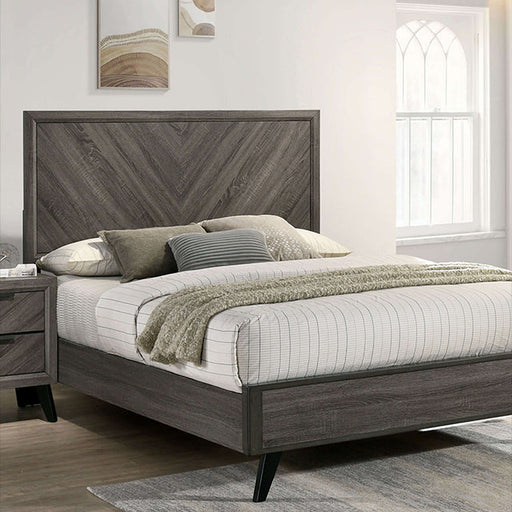 Something about this bed's cool gray finish and chevron grain pattern gives it a stylish vibe. The diagonal replicated grain meet at the center lin...