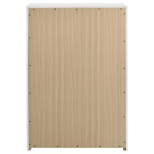 Inspired by Italian contemporary design, this five-drawer chest of drawers blends sculptural elegance with lasting performance. The white high glos...