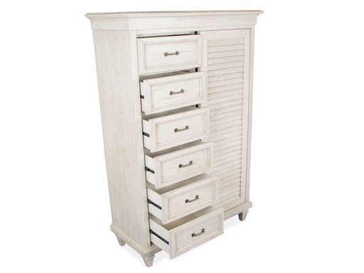 Discover elegance and functionality with this beautifully crafted chest, designed to complement your bedroom suite. The pearl white finish, highlig...
