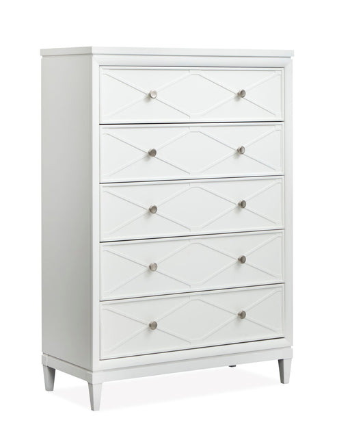 Maximize your bedroom storage with this stylish 5-drawer chest, featuring a modern Italian design. The white finish and picture framed recessed pan...